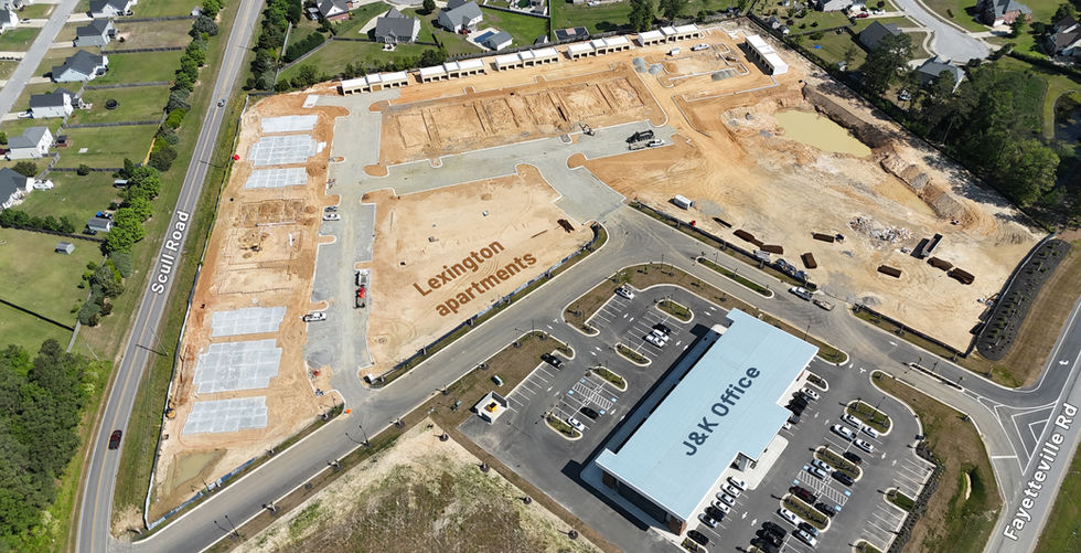 This project features the complete site development for a new multi-building apartment complex along U.S. Highway 401 and Scull Road in Hoke County. Work includes grading and erosion, construction of paved access drives, parking lots, and concrete sidewalks, and installation of on-site utilities. The scope also includes over 1,200 linear feet of 8-inch public water main, 1,000 linear feet of 8-inch sanitary sewer, and a storm drainage network consisting of 12- to 36-inch HDPE pipe, catch basins, and detention facilities. Additional work consists of curb and gutter, fire line and hydrant assemblies, ADA compliant ramps, landscaping, and full site stabilization.